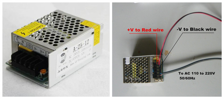 Second, Connect power cable prepared by you to L and N wiring terminals of power supply of DC12V/24V.